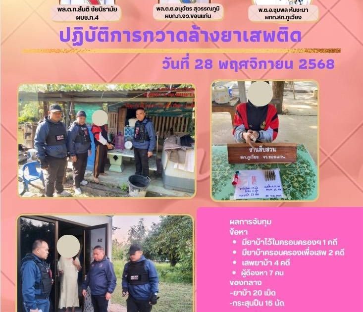 สภ.ภูเวียง ขอรายงานผลการปฏิบัติ ดังนี้