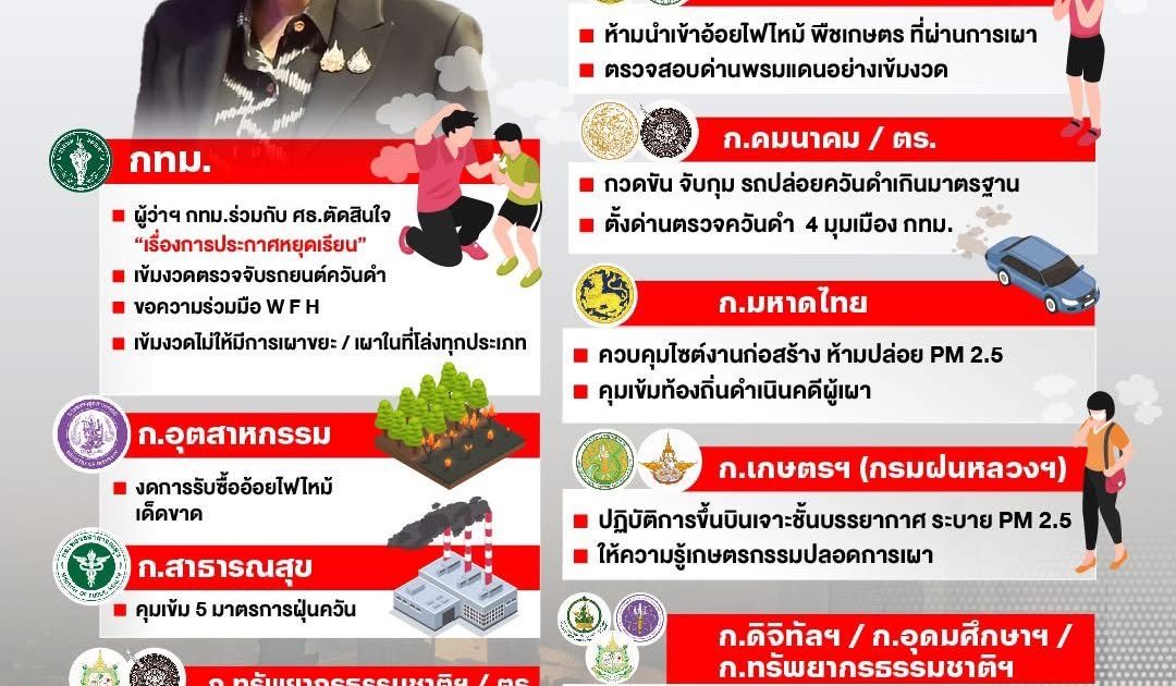 ก.เกษตรฯ : ขอ กรมฝนหลวงและการบินเกษตร ขึ้นบินเจาะชั้นบรรยากาศระบายการสะสมของฝุ่น หน่วยงานอื่นลงพื้นที่ ให้ความรู้เกษตรแบบปลอดการเผา