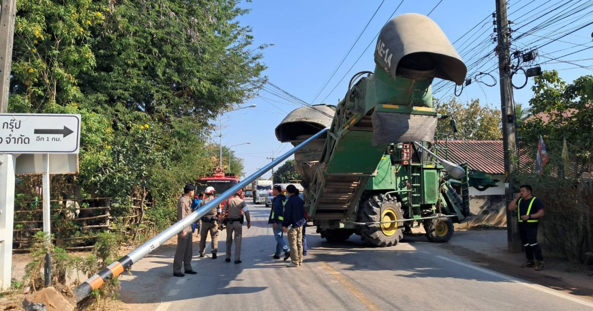 หตุรถยนต์ตัดอ้อยเฉี่ยวชนไฟส่องสว่างข้างทางทรัพย์สินทางราชการเสียหาย