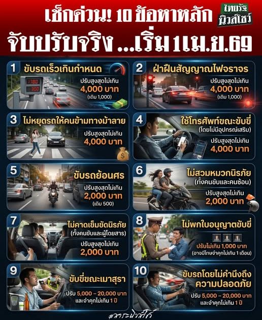 1 เม.ย. นี้ ปรับจริง! 10 ข้อหาจราจรที่สายขับรถต้องระวัง