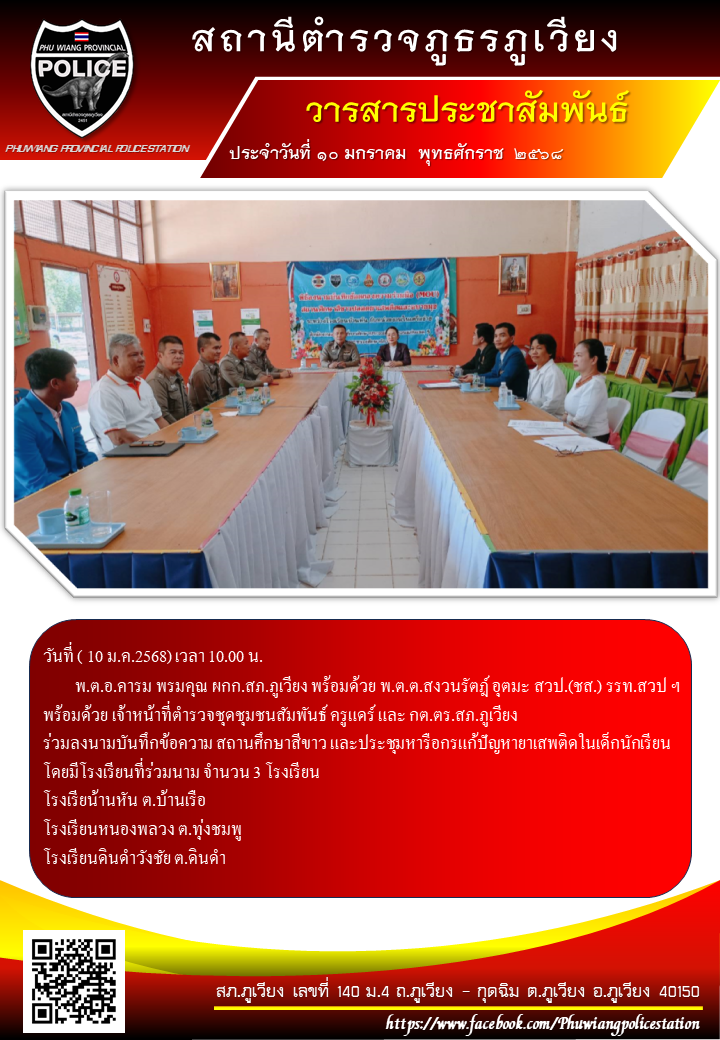 ผลการปฏิบัติงานของ กต.ตร.สภ.ภูเวียง เดือนตุลาคม 2568 คลิกเพื่อเปิด